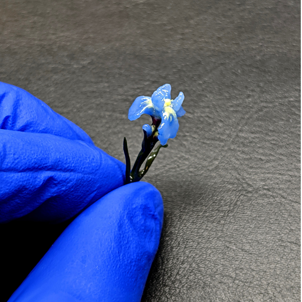 Amalthea Iris is besides the Callisto Rose and Elara Sunflower part from a trilogy project entitled “fleurs de rocaille”. It is a metal ceramic handcrafted work of art, once again proving the skills of the dental technician and the importance of a unique design.